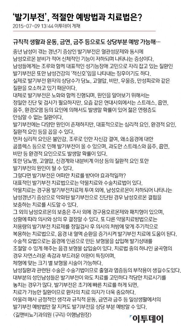 '발기부전', 적절한 예방법과 치료법은? > 언론보도