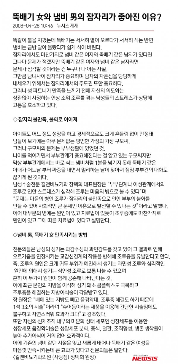 뚝배기女와 냄비男의 잠자리가 좋아진 이유? > 언론보도
